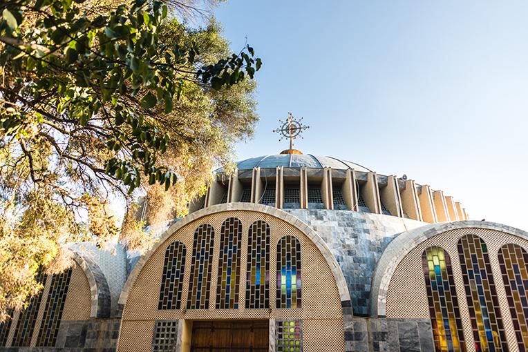 The massive concrete domed structure was commissioned by Emperor Haile Selassie to permit mixed gender worship.