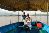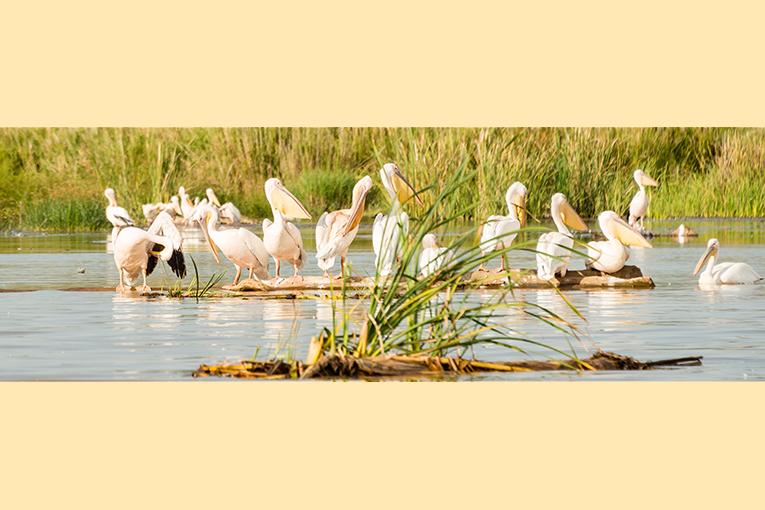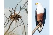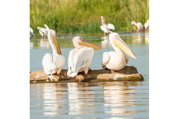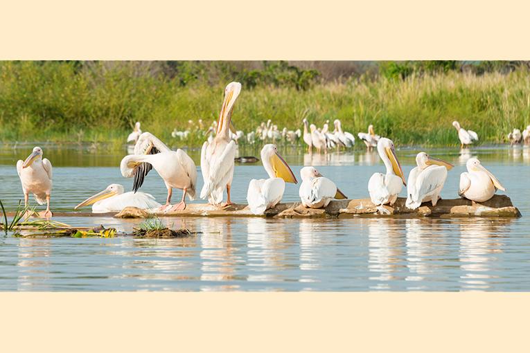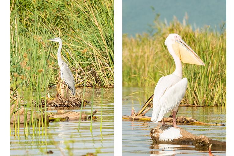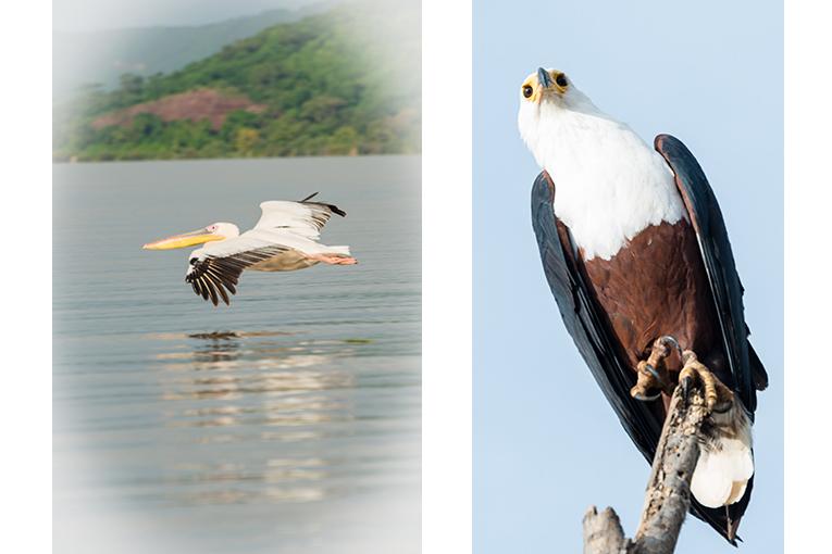 Bird life is also enjoyable at the lake. Hordes of yellow wiver birds flit constantly through the trees, and vividly-colored king fishers skim the lake where great white pelicans storks, ibises, hornbills and cormorants plumb the waters for food.