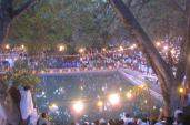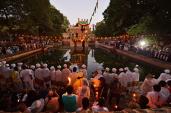 During the ceremonies of Timkat, the Tabot, a model of the Ark of the Covenant, which is present on every Ethiopian altar (somewhat like the Western altar stone), is reverently wrapped in rich cloth and born in procession on the head of the priest. The Tabot, which is otherwise rarely seen by the laity, represents the manifestation of Jesus as the Messiah when he came to the Jordan for baptism. The Divine Liturgy is celebrated near a stream or pool early in the morning . Then the nearby body of water is blessed towards dawn and sprinkled on the participants, some of whom enter the water and immerse themselves, symbolically renewing their baptismal vows.