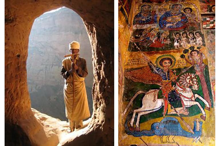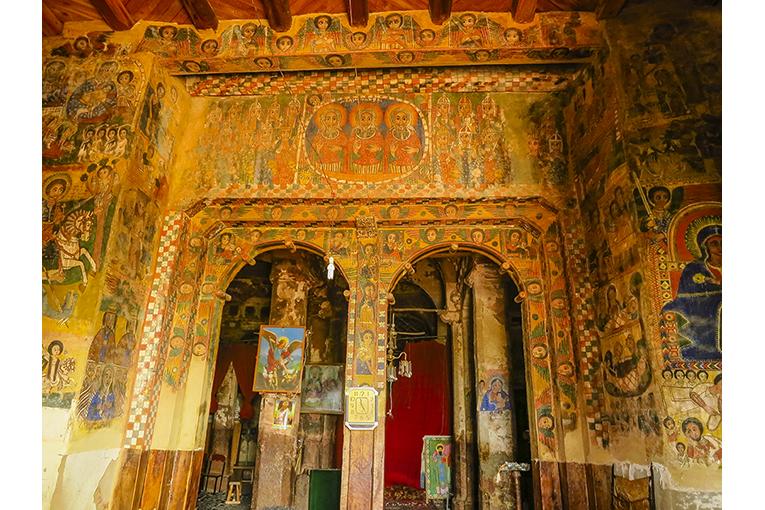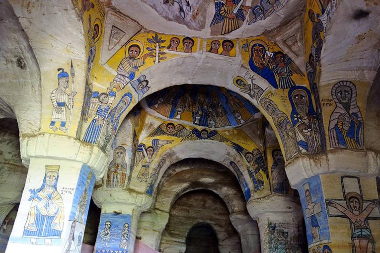 And the 120-odd churches are as intriguing as the landscape is beautiful. Very different from the more famous monolithic (carved out of the ground and only left attached to the earth at the base) churches of Lalibela the Tigrayan churches are generally semi monolithic (only partially separated from the host rock) or built into pre-existing caves. Most sit high atop cliffs and the improbable perches add to their attraction. To approach these hidden galleries after a long sweaty and sometimes slightly scary slog makes for a very rewarding excursion. And beyond a few famous churches, you’ll likely get to explore on your own, even in the high season.