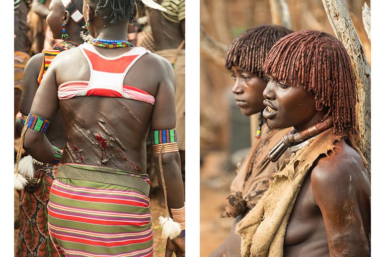 First, female relatives dance and invite whipping from men who have recently been initiated; this shows their support of the initiate, and their scars give them a right to demand his help in time of need.