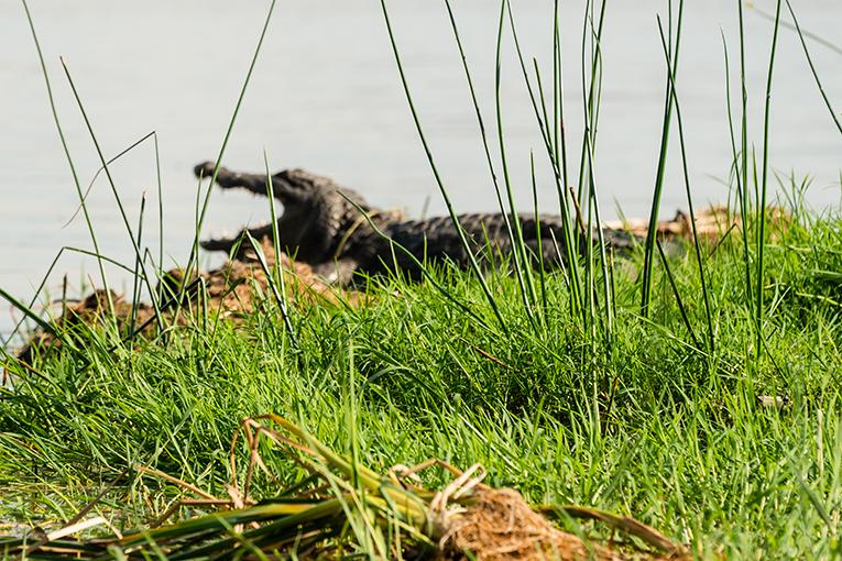 In the bays, a number of hippopotamus emerge at dusk to graze on the grassy shores.