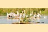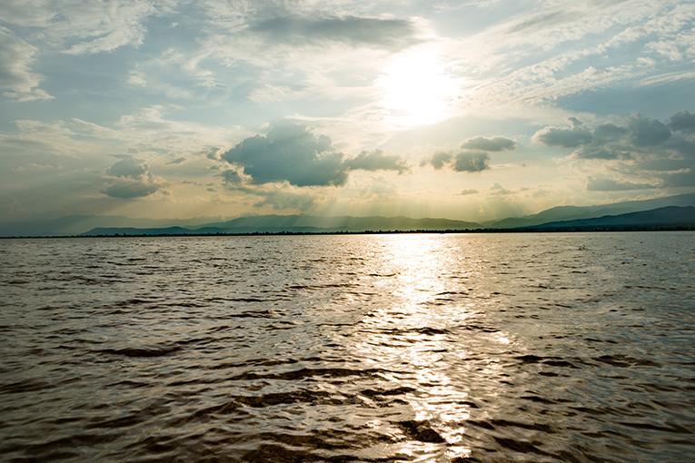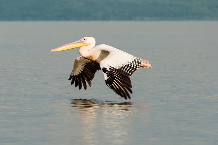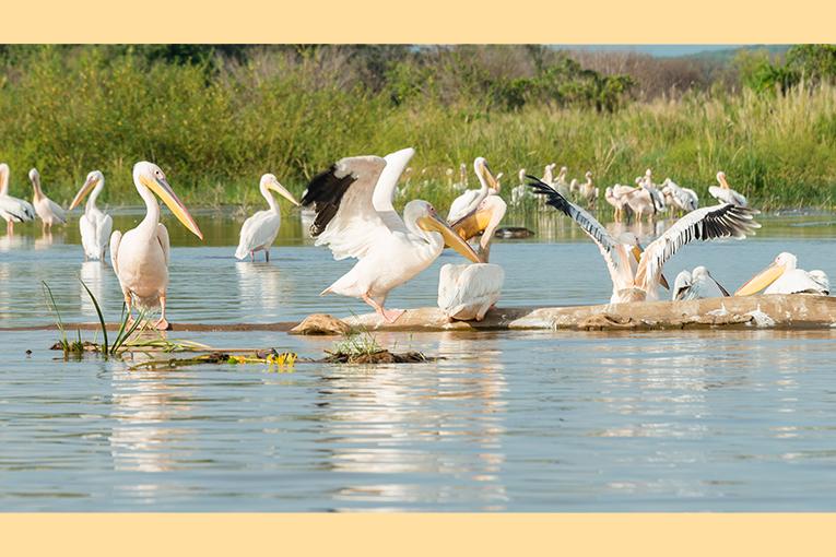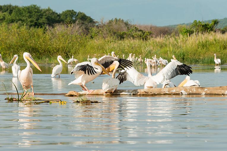 Bird life is also enjoyable at the lake. Hordes of yellow wiver birds flit constantly through the trees, and vividly-colored king fishers skim the lake where great white pelicans storks, ibises, hornbills and cormorants plumb the waters for food.