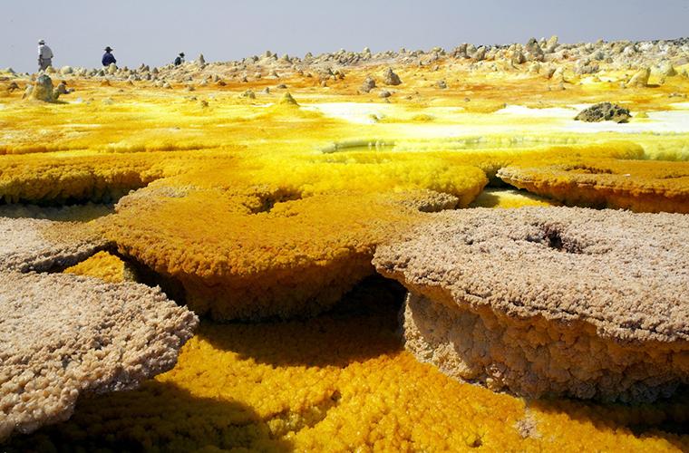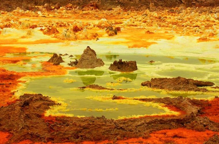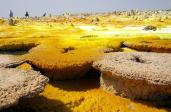 One of the most driest place and most tectonically active area on the planet , Denakil is an area of singular geological fascination: a strange lunar landscape ,Studded with active volcanoes , malodorous sulphur-caked hot spring, solidify black lava flows and fast salt –encrusted basins. This area has more than 30 active or dormant volcanoes –roughly one –quarter of the African total as listed by the Smithsonian institute Global volcanism program.